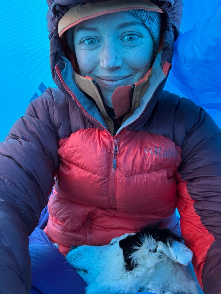- Dogs stay and snooze while mom skis back to camp, makes breakfast, packs up, and gets some miles in solo
