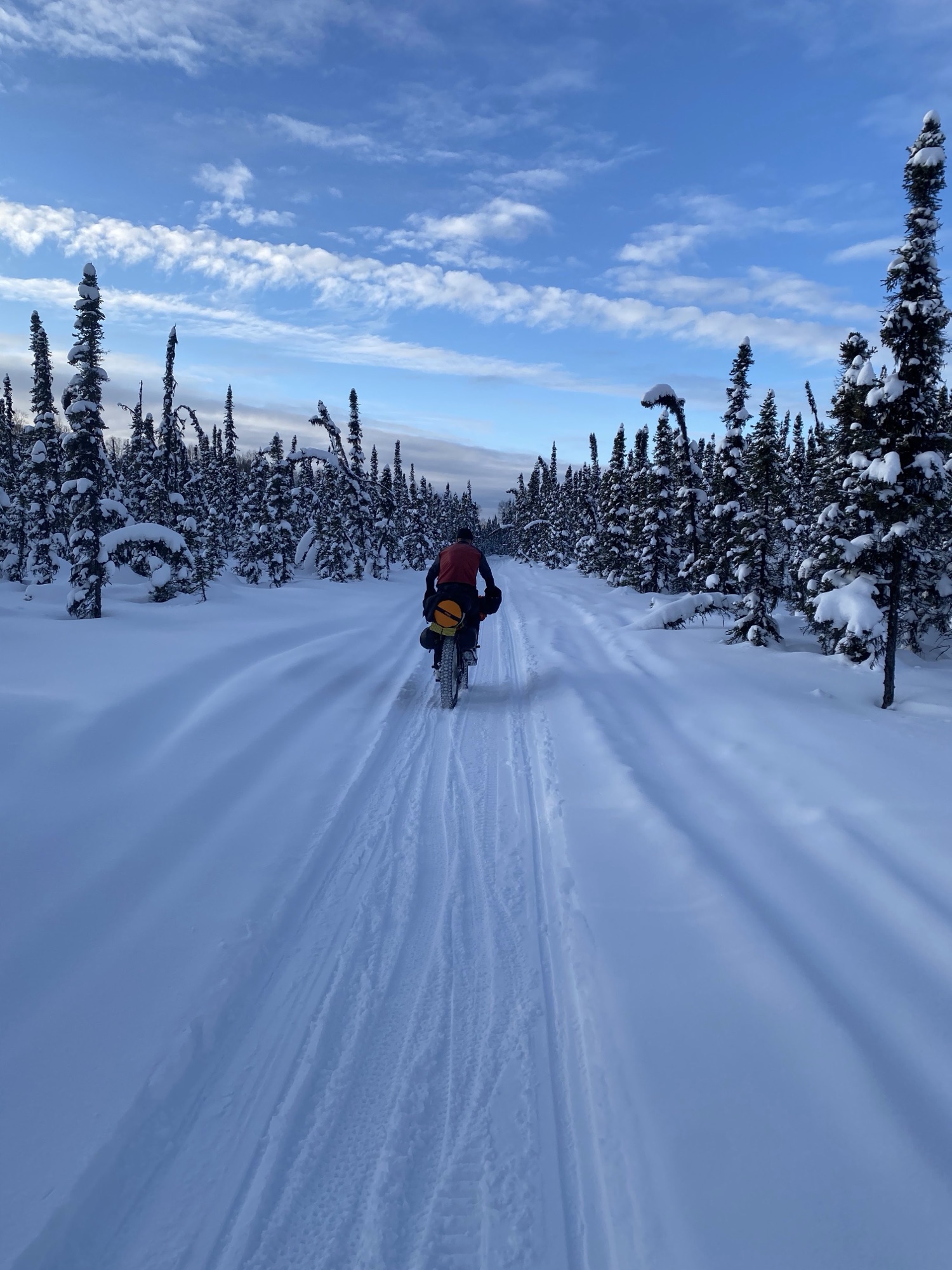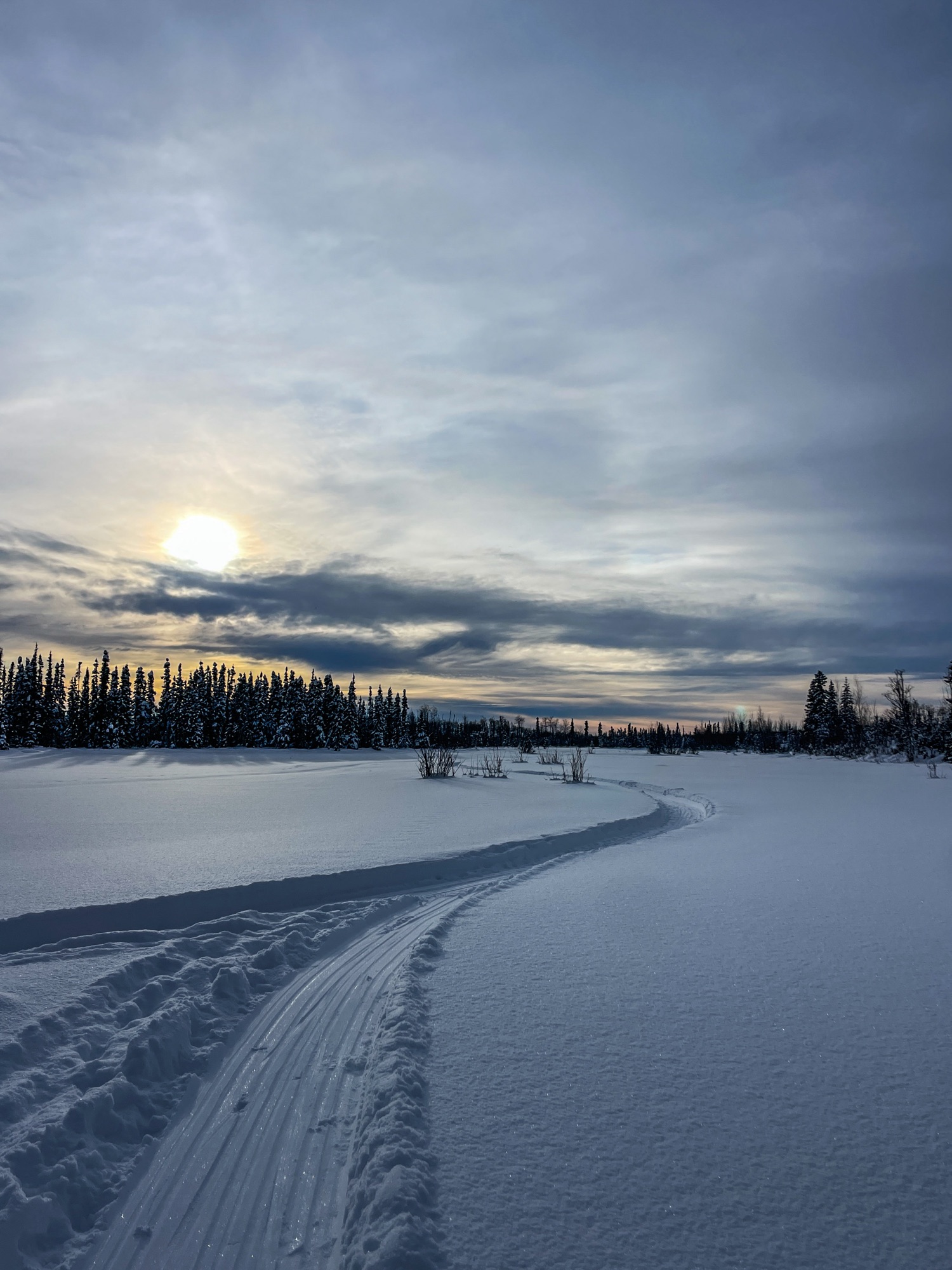 We did a ride on the trails each day (or night), to help gain familiarity with the trail network in the area. The base camp is the first official checkpoint on the ITI, and a maze of trail options lead to and from it. The ITI does not have an official route that athletes are required to follow, so the first 50 miles until the race reaches the Yentna river can be a bit of a free for all. The only requirement is to check in at each official checkpoint. Getting out on the trails several times, and navigating some of the “choice points”, will be a great help if I qualify to ski the race. The trails were east on the eyes, too 🤍