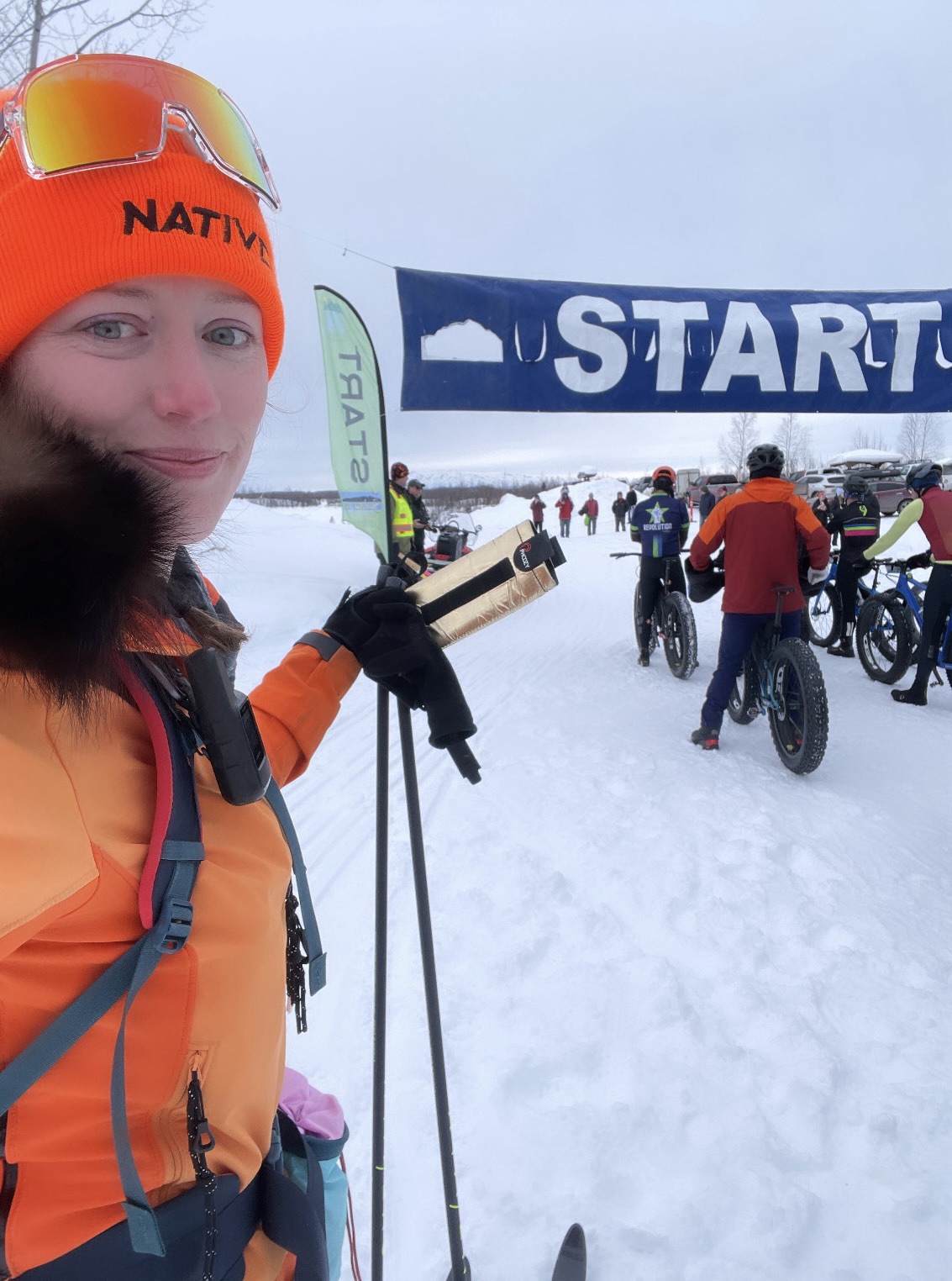 The next weekend, I got to do the Little Su 50K race, the little sibling to the Susitna100 Ultra. Again, good things come to those who plan: I’d signed up 2 minutes after entries opened November 1 to secure my race bib, knowing I’d want to treat it as a 7-days-out shake-out ski. I didn’t pull my sled, so as not to tire myself out close to big raceday start. My goal was to ski a consistent pace for the duration of the 30 miles. My first hour I skied at a rate of 3.8mph, the first 4 hours my rate was 3.7mph, and over the whole 50k, my moving average rate was 3.68mph, which I was very pleased with. I finished after dark and got to hang out in the Happy Trails Kennel welcome building, eating a baked potato while Martin Buser talked to me about the Iditarod Trail and my Wolverine Ruff. #winning.