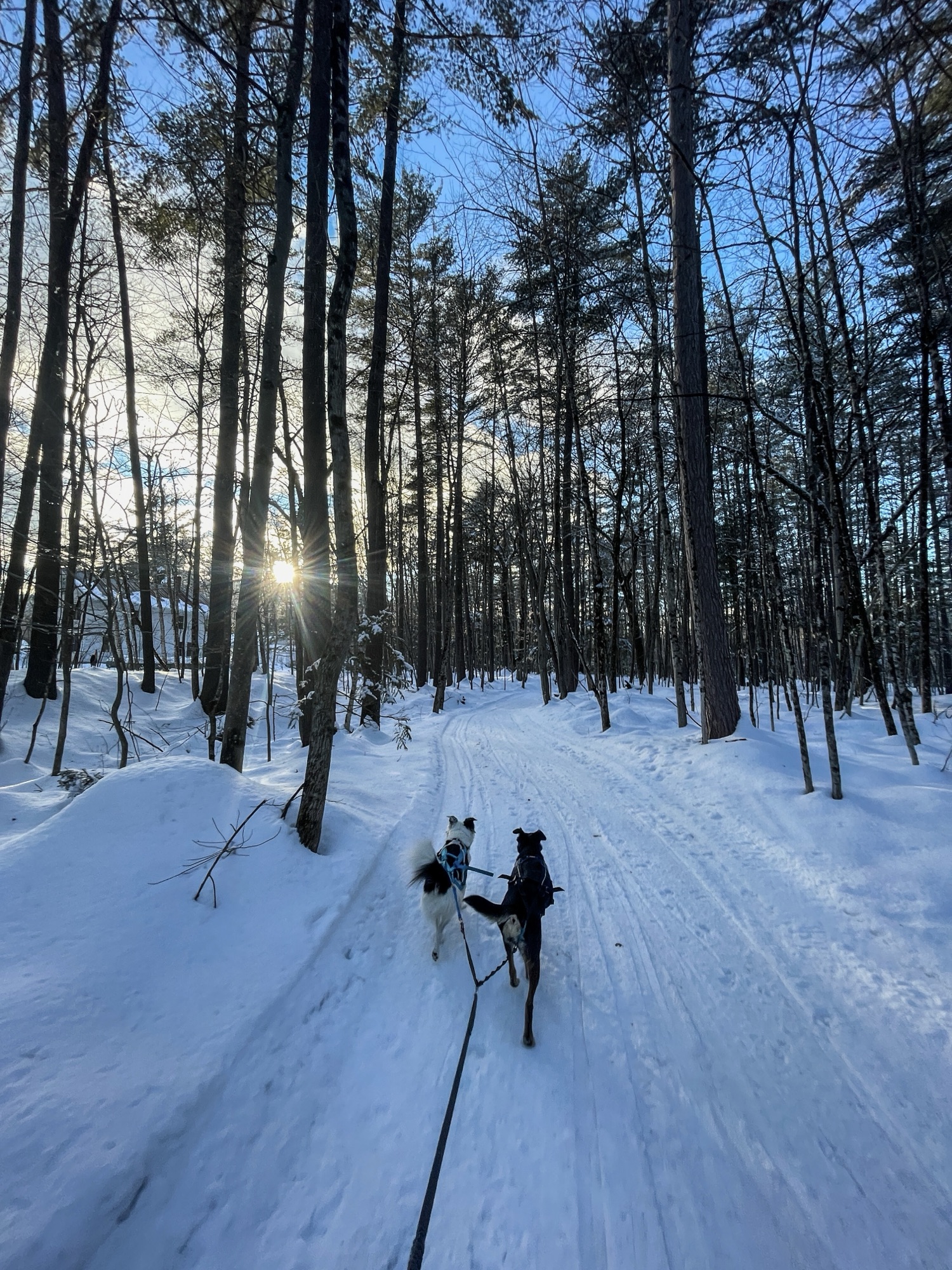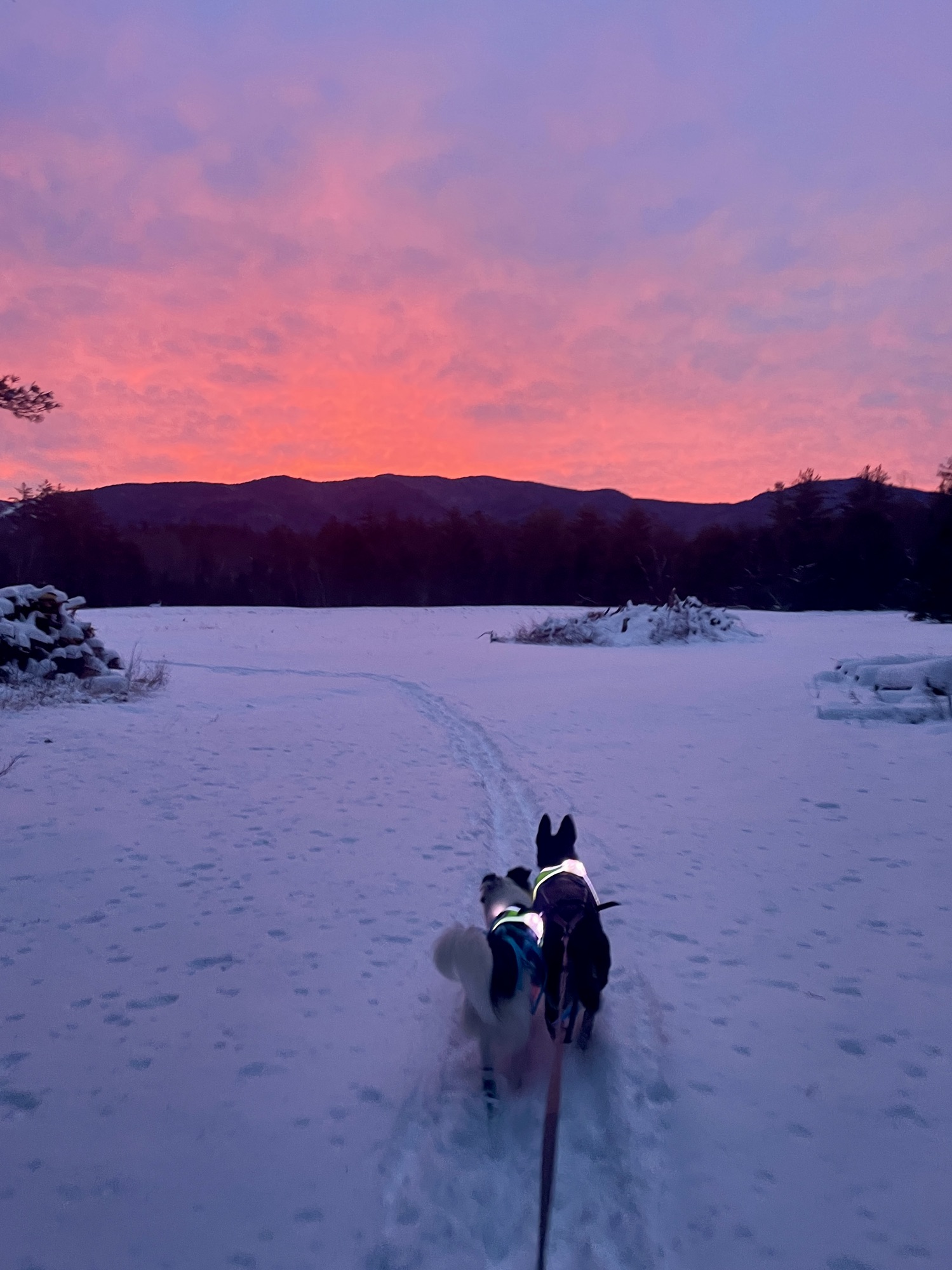 All around us, it was a winter wonderland…for about a 30 mile radius. Everywhere else in New England, lakes never froze, snow never came, winter trips were cancelled, and nearly every single American mushing race was cancelled south of Alaska. I have a half-joking saying that “Good things come to those who plan”. I did the planning to know the location to be and get the place, but it still took a fair amount of weather luck for the plan to work. I was very grateful for it! We know we live in a place where we are losing our winters, which made me even more determined to ring every last drop out of this one. It was a beautiful, calm, liminal month, that I’ll always remember as an early-morning skijor as the light slowly rises over two glowing dog tails running me in-harness in the shadow of Mt. Isolation and the other surrounding peaks of the Whites.