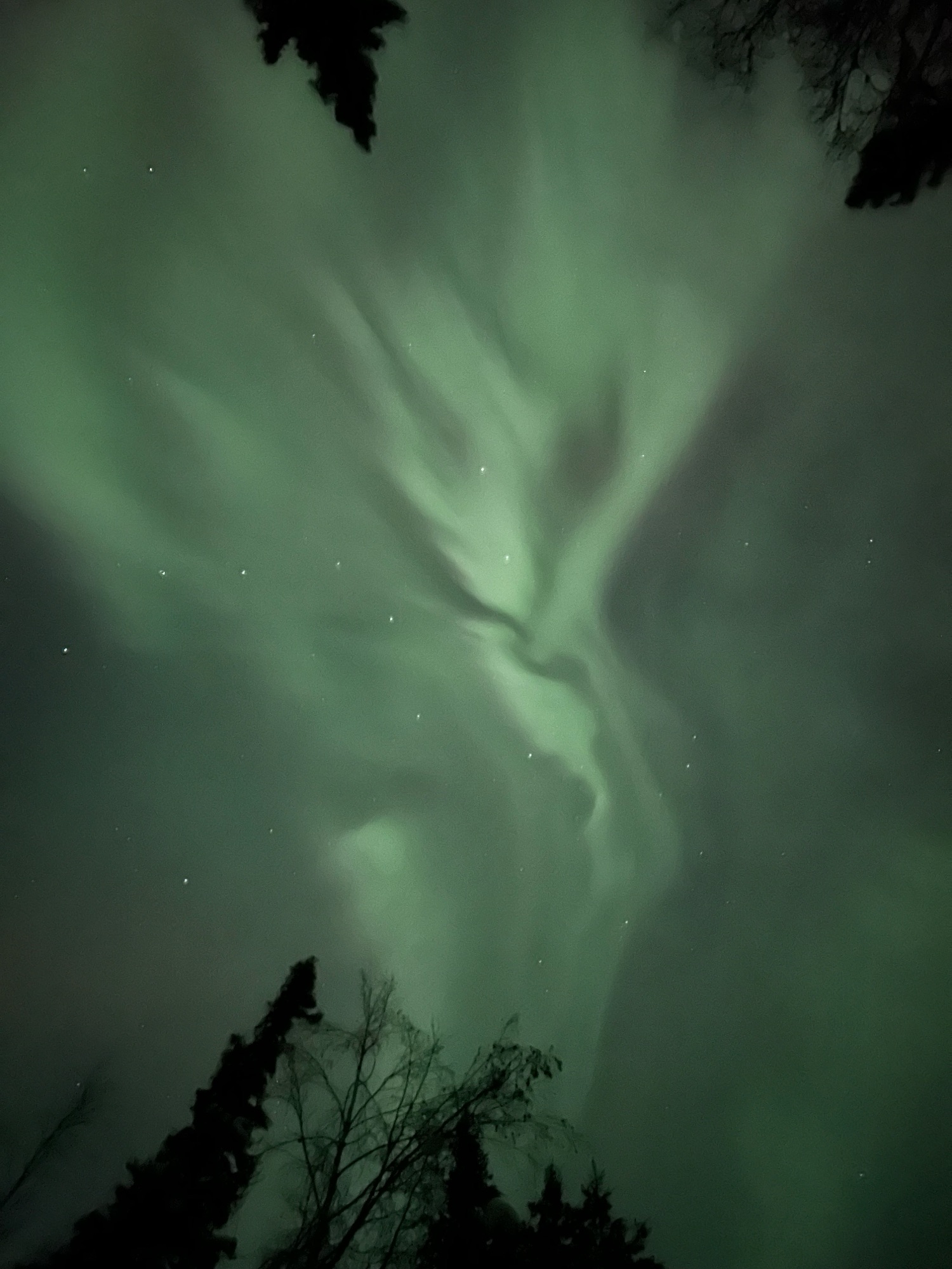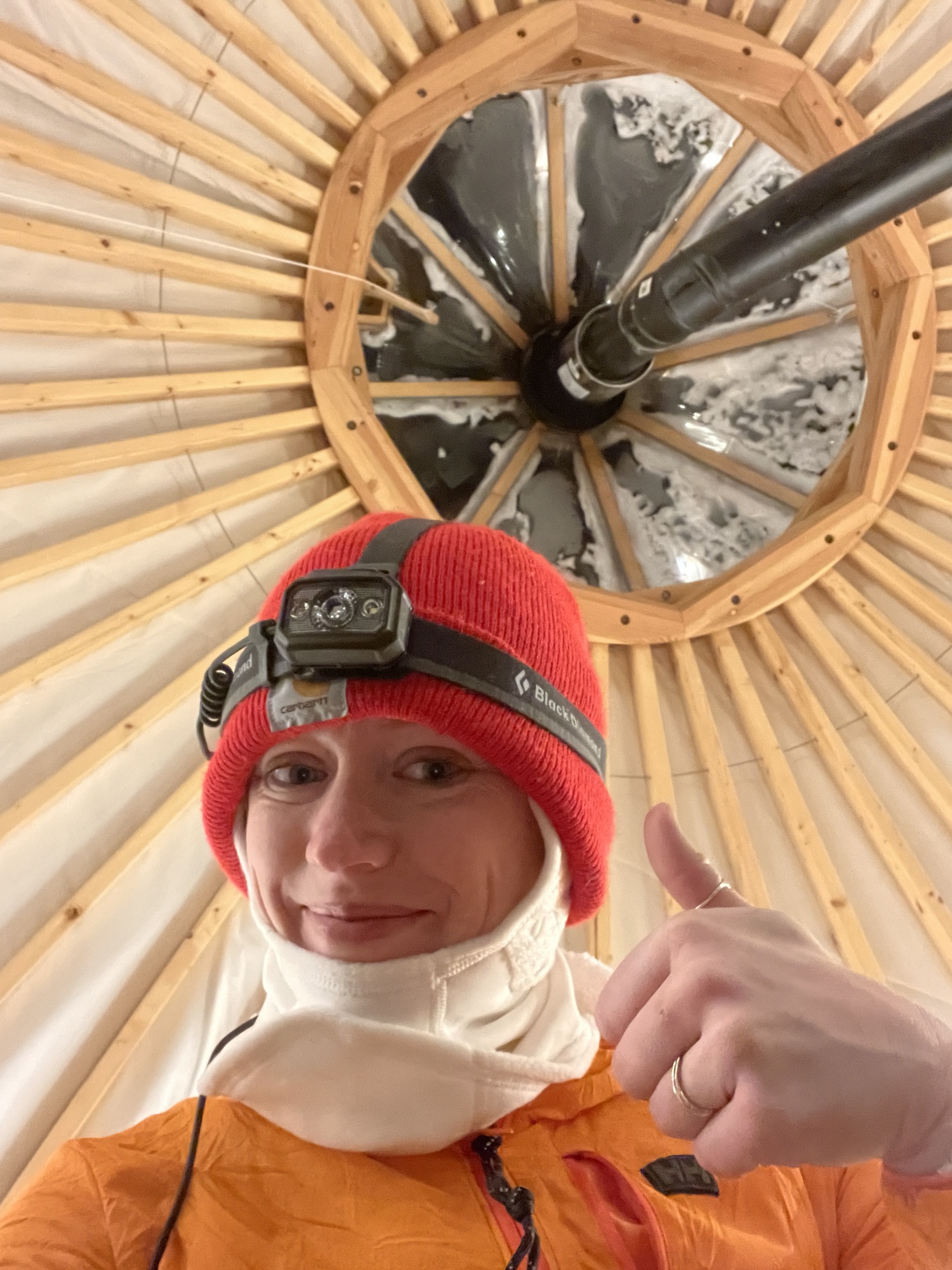 Her reason for coming was to see me off, but she had two very concrete goals of her own: See a moose in real life, and see the northern lights. We got the moose thing checked off on morning 2. And those elusive northern lights? Michele has gone on many trips, around the world over many years, trying to see the Northern Lights She rented a camper van and drove around Northern Norway for a week. She’s been to Iceland in January Never had any luck. But the last night she was at the yurt, 12 hours after the race starts?