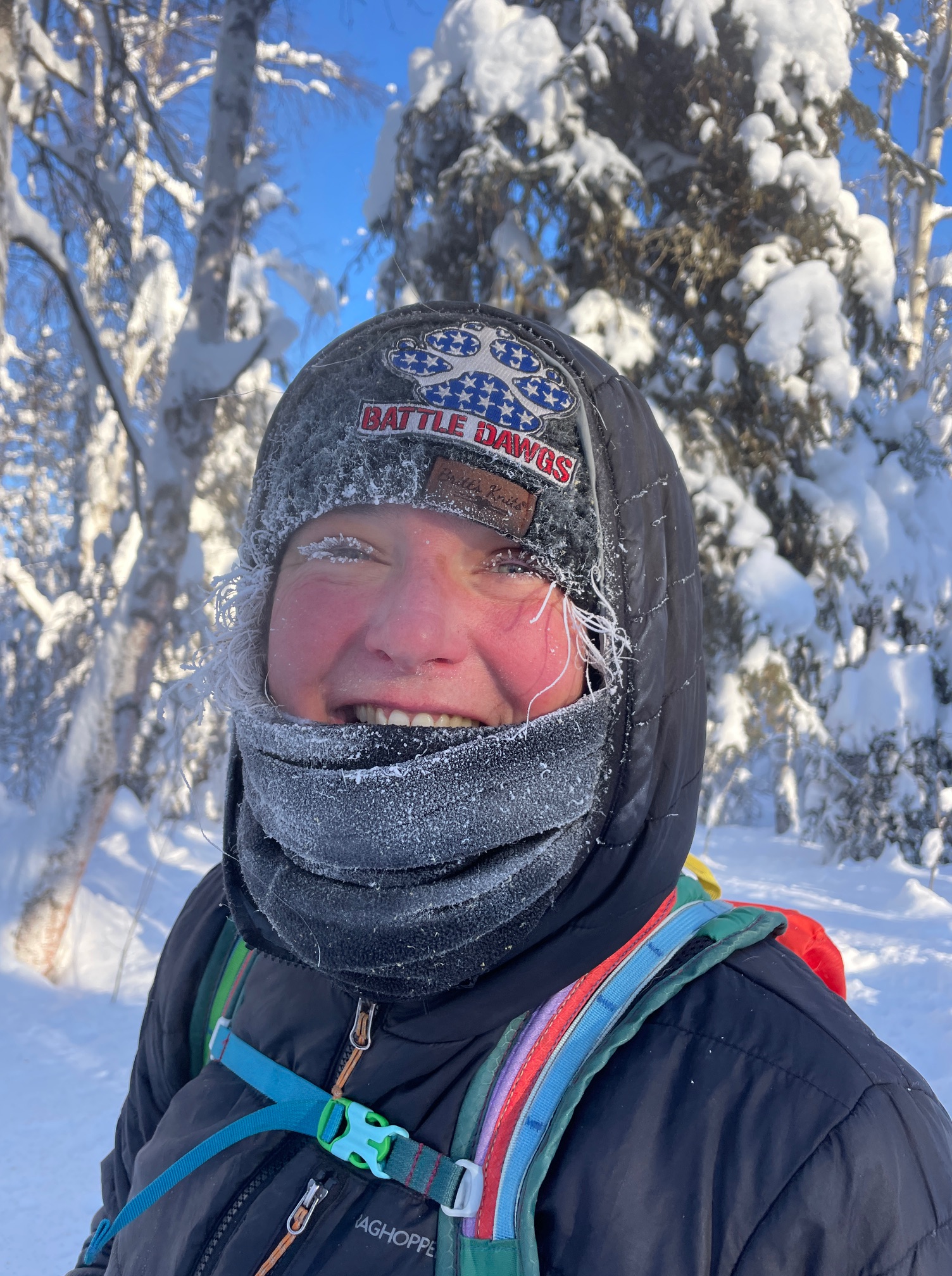 As I got more intense and committed in my quest to ‘connect my line’ (I hike out of order and jump around based on weather and conditions) and accepted both my and my dogs’ acute heat intolerance, my season extended longer into the fall and began earlier in the spring. As the sole member of the WyWo club with opposable thumbs and rational thought, I figured I’d better bolster my skills with winter camping with some professional help so that I wouldn’t get us in trouble in the backcountry. I became aware that the ITI Organization offers an official training camp. Right on the ITI course, this training camp was an opportunity to learn all the skills needed to compete in the winter ultra race and keep yourself safe in extreme cold of Alaska. Exactly what I needed! Plus, get to learn a bit about the race and experience a bit of what the Iditarod trail would be like? Perfect. Sign me up. My own little slice of Iditarod, then home safe to the east coast. Famous last words.