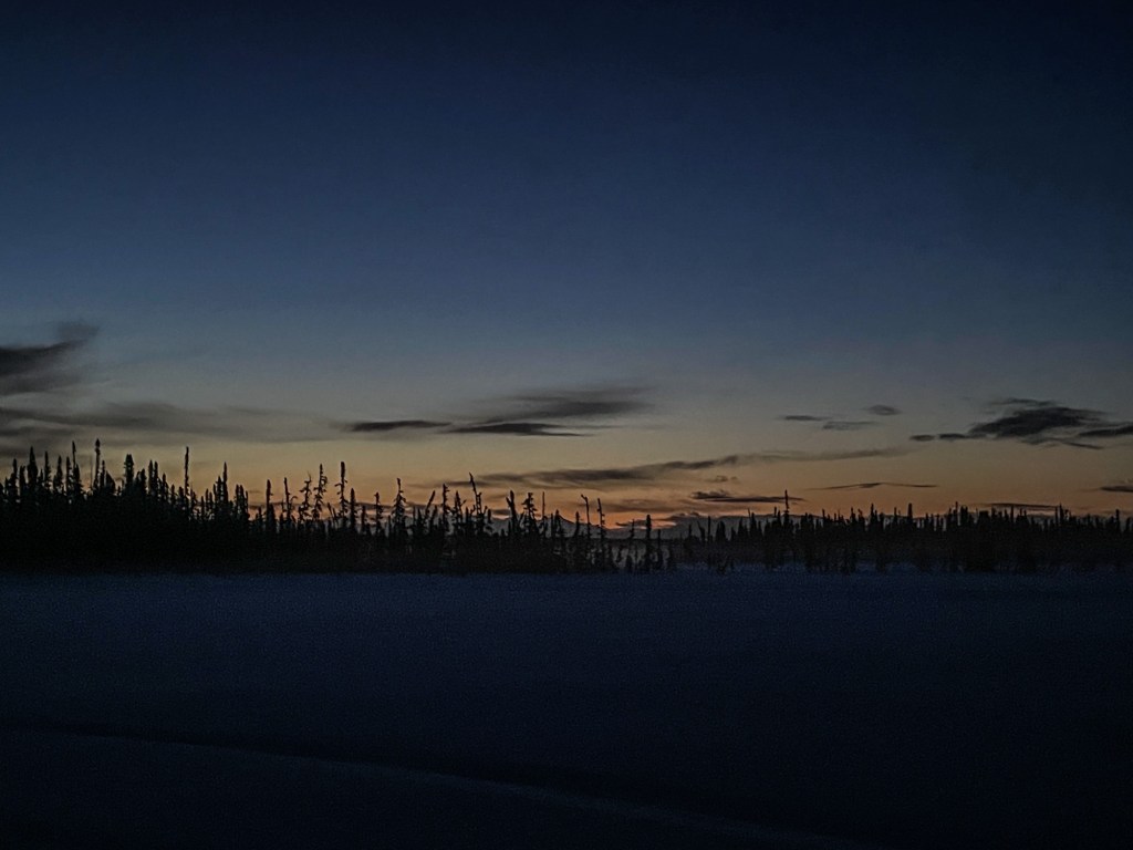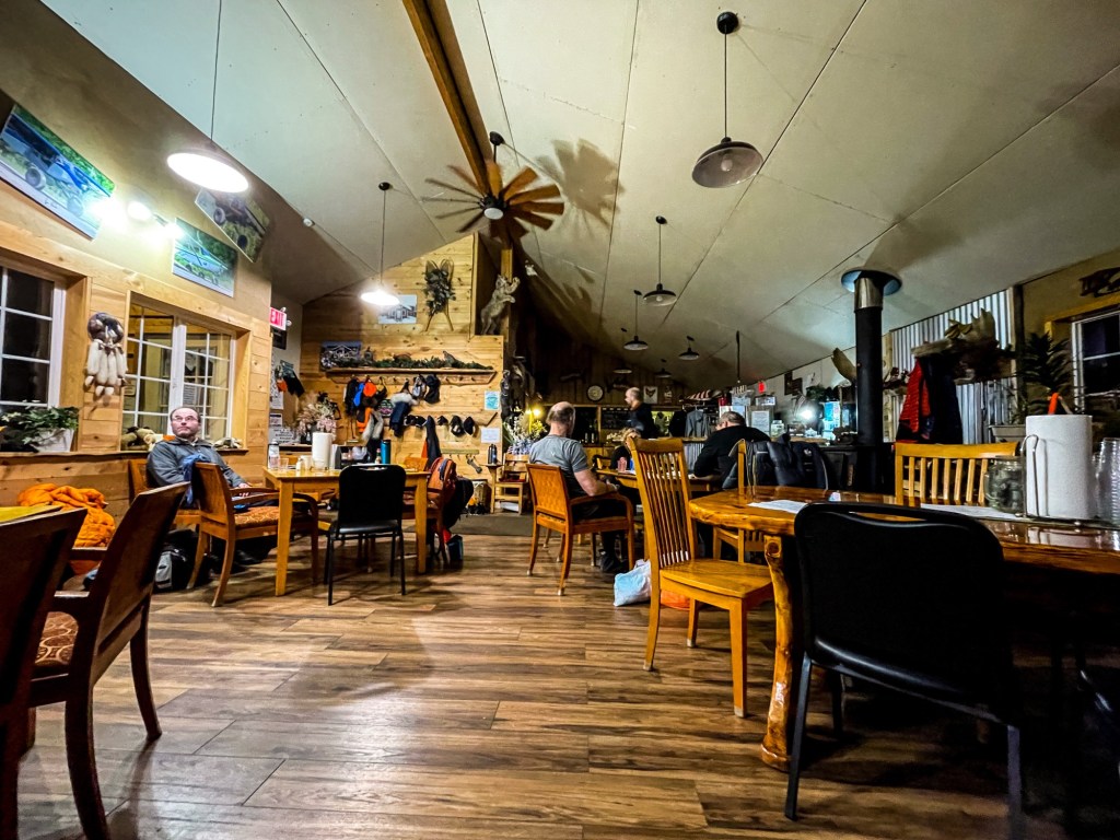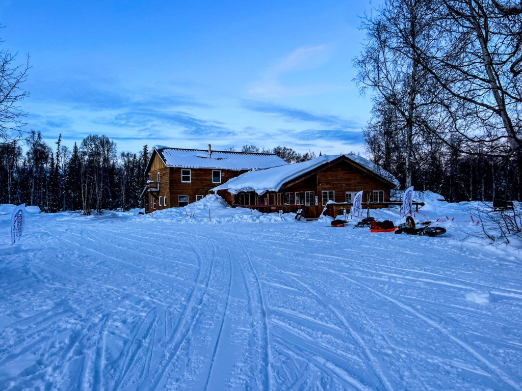 Skwentna was an odd place–a BnB in what felt like the middle of nowhere! It serves a lot of the snowmachine traffic in the area, and also as an Iditarod checkpoint. I got the world’s largest slice of reindeer sausage lasagna, ate until I physically could not take one more nibble. A few others having dinner opted to continue on. Josh departed and came back 10 minutes later, reporting that the winds were starting to pick up and to adjust his layers in a warm space. Head out after dark, in a wind storm? No thanks. I got ready to tuck myself into bed early for another 4am wake-up call.