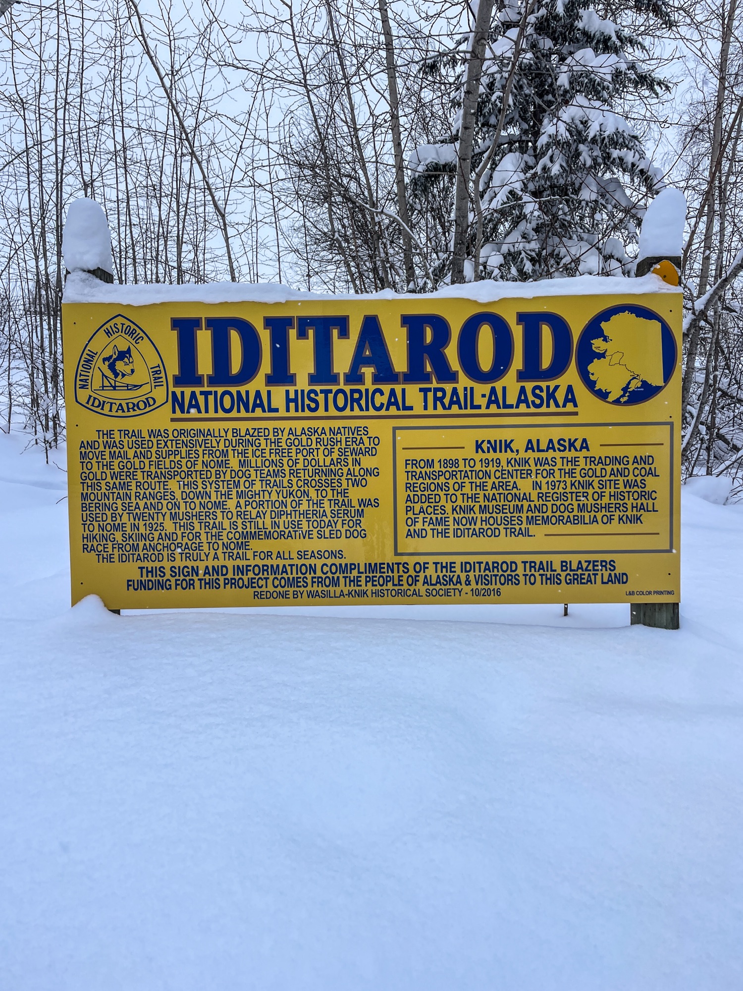 The day one trail offers multiple options to get from race start to CP-1. Unlike many races, the ITI doesn’t mandate a set route; you have to get to each checkpoint, in the correct order, under your own power without outside assistance. That’s it. My Camp experience and three weeks of training locally allowed me to get familiar with all my trail options and have a plan A, B, and C for my route, as conditions dictated. Thankfully, the trail had frozen back up and I was able to take my preferred plan A route, up the Iditarod Trail to the Aurora Dog Mushers trail, to the road network connecting to Susitna Brewery and across Big Lake.