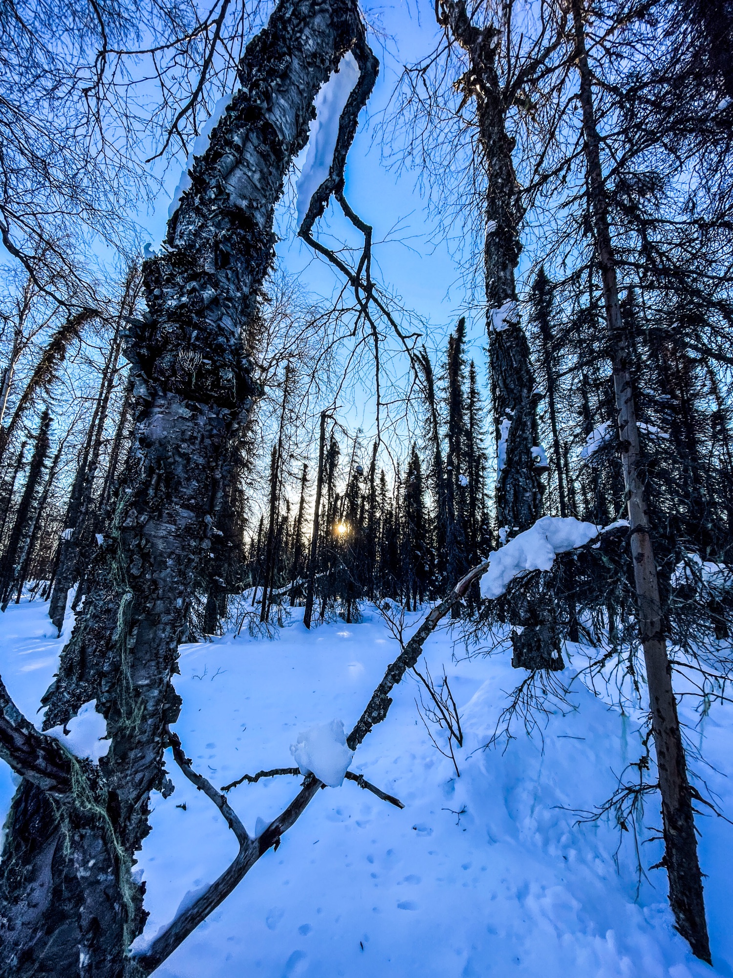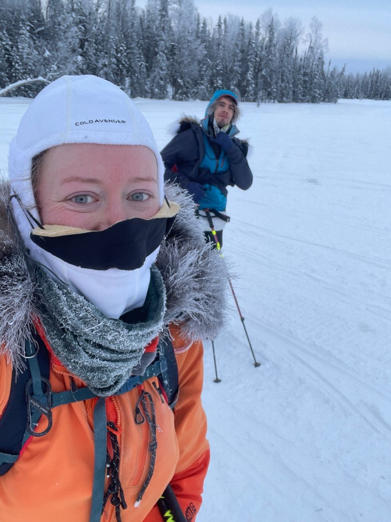 I shuffled back along the side of my sled to grab a peek at the thermometer. Negative twenty two?! It was just seven degrees a few miles ago! A cool thing about climate in Alaska is how the microclimates work. The rivers and swamps serve as cold sinks in the winter; the coldest temperatures settle in them and they can be ten to twenty degrees colder than the banks just a few dozen yards away. Behold, a two-part video where I geek out about this in real-time. Oh, and also…it wasn’t just the pull tab. I’d popped the entire zipper off and my coat was only remaining shut by the gentle hold of my backpack chest strap and vibes.